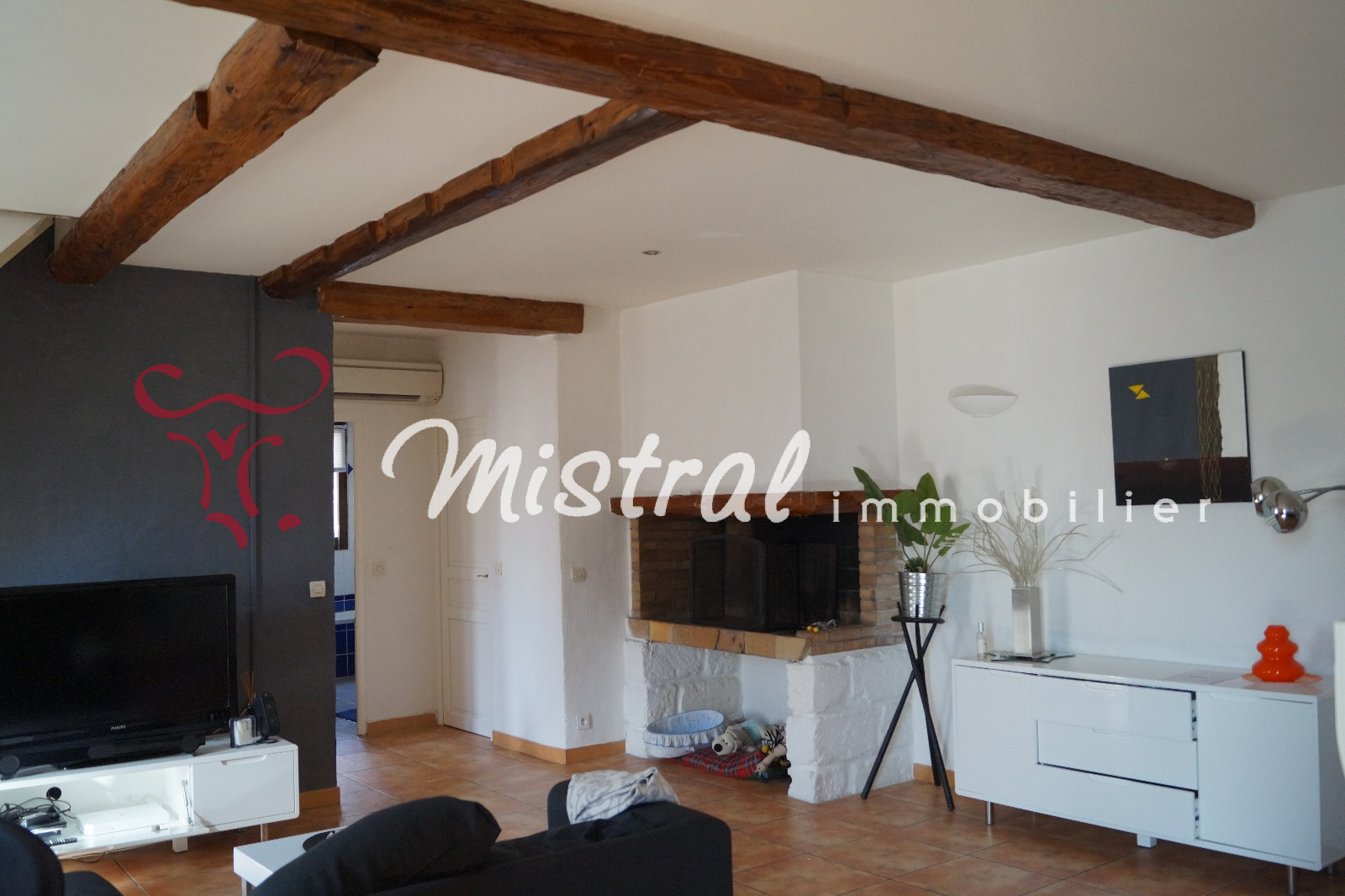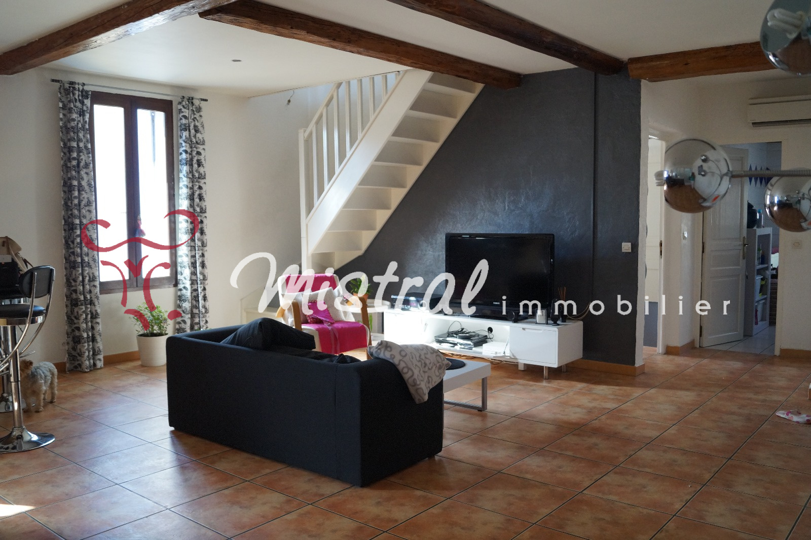 Maison de village de 87 m2, composée d'une pièce principale avec une cheminée et une cuisine équipée ouverte, de 2 chambres et d'une mezzanine. Depuis la terrasse de 22 m2 orientée plein sud, vous aurez une magnifique vue sur la tour de Constance. Climatisation. Rue calme et proche du centre ville.