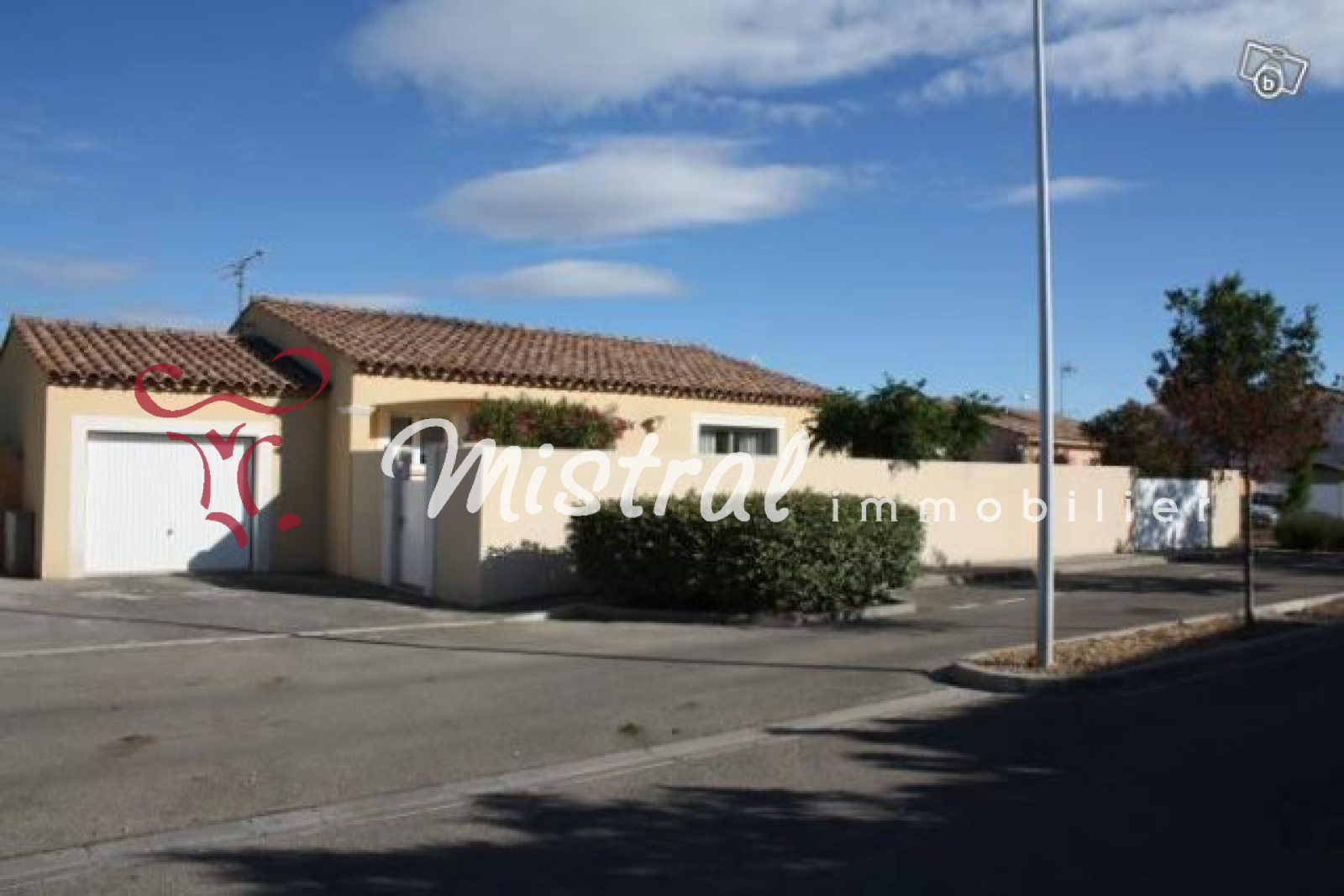 ***VENDU MISTRAL *** Villa récente de plain pied, non mitoyenne disposant d'un bel intérieur lumineux, belle pièce à vivre avec cuisine ouverte donnant sur une terrasse couverte, 3 chambres avec placards, salle de bains/douche, grand garage carrelé. Le tout sur 412 m² de terrain piscinable, quartier du collège. Excellent état.